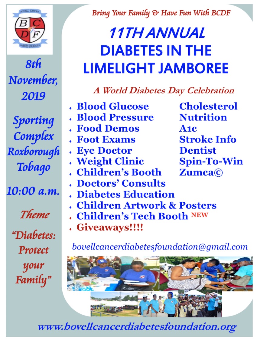 The 9th Annual "Diabetes in the Limelight Jamboree" will be held on the 8th November, 2019 at the Roxborough Sporting Complex, starting at 10 am.